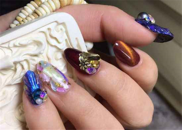 二者味道基本相同,但猫眼胶添加了磁石粉成份,在滴入测试时显得很稀,在上色时有一定门槛,新手可能会出现涂不匀或涂太厚缩胶的情况,多加练习就可以解决。猫眼胶和甲油胶不一样,需要在吸好后立刻放入美甲灯内照干,不然猫眼胶会慢慢消失。猫眼胶美甲一般持久在15天左右。