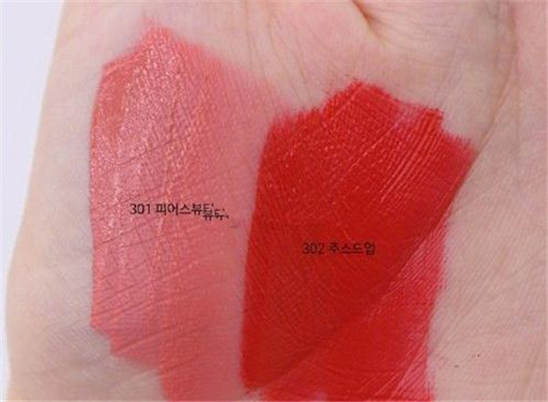 301和302都是哑光质地,涂抹后是非常柔软的天鹅绒感觉,这两个颜色搭配起来涂抹渐变非常好看。