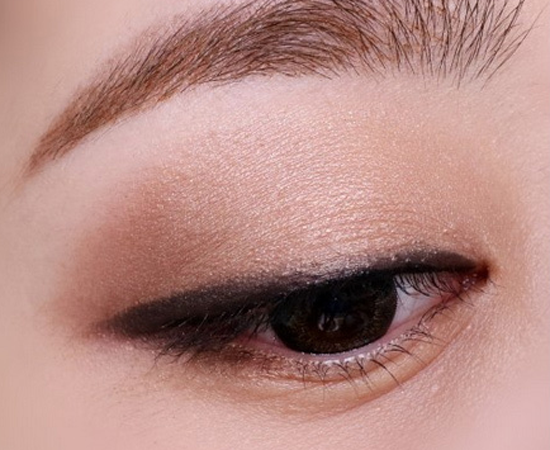 第六步:深棕色眼影压在外眼尾同时稀释眼线。