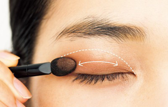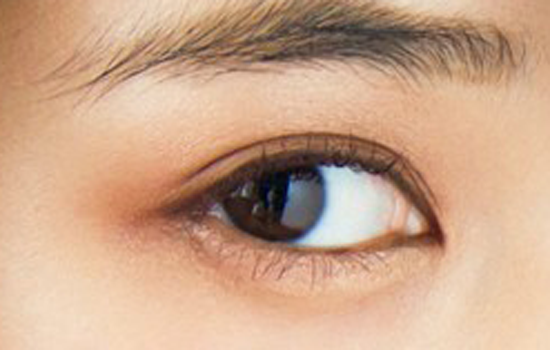 第三步:棕色眼影作为基础深色起到非常重要的平衡作用,画在二分之一个眼皮上,不要和浅棕色有明显的边缘线。