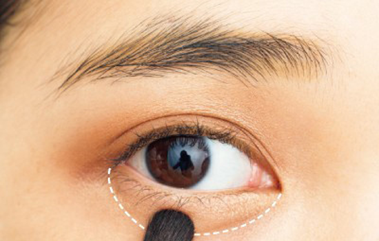 第四步:泪袋位置用哑光米白色眼影填充,以眼头为主少量带过眼尾。