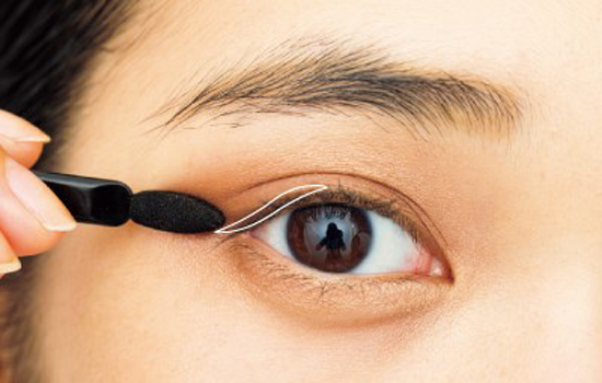 第五步:眼线笔填补内黏膜,从眼珠外侧开始增粗向后拉线,眼线笔边缘不利落的地方使用小笔刷晕染让眼线眼影过渡自然。