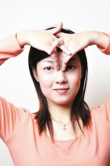 2.再用中指置于鼻部,提起鼻翼,保持10秒后,随之恢复自然。