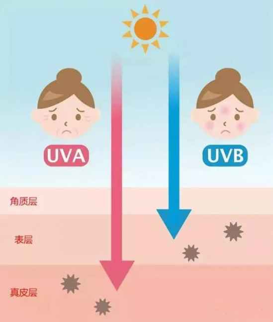 紫外线里的UVB波长短,会导致皮肤外层晒伤,而波长更长的UVA则会直达真皮层,产生氧自由基从而导致光老化,而皮肤为了自保就会大量产生黑色素了~