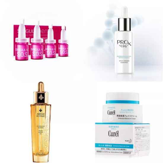 SOS安瓶(抗衰)+olay pro-x小白瓶(美白抗氧化)+珂润混娇兰复原蜜(沙漠皮我墙裂推荐珂润混复原蜜的组合)+防晒(抗氧化)~干皮可以参考一下