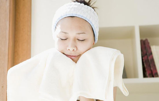晚上洁面后用热毛巾敷脸五分钟。热敷可以促进脸部的血液循环,使脸部细胞得到滋润,帮助肌肤放松,打开脸上的毛孔,更好的清洁肌肤。热毛巾敷过脸之后涂上补水保湿的护肤品,可以帮助肌肤吸收护肤品中的营养,更好的防止水分流失,还能让肌肤在睡眠中轻快地呼吸。