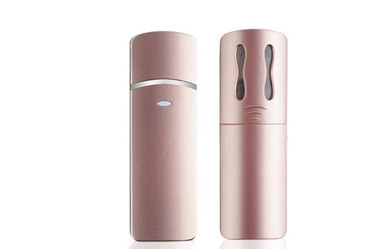 2、轻按开关,让补水仪的喷口45度角离脸部15厘米左右进行;