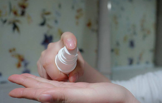 7、涂抹乳液,挤一枚银币的大小在手心,然后两手搓热后上脸涂抹,以向上提拉的手法在涂抹最佳。最后就是锁住水分的保湿面霜了。点涂在脸上,然后顺着紧致提拉的方向涂抹。一定要耐心的呵护我们的肌肤。