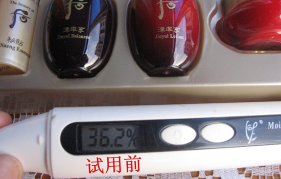 5、由测试仪可得,使用前肌肤水分值为36.2%,肌肤处于干燥的状态。