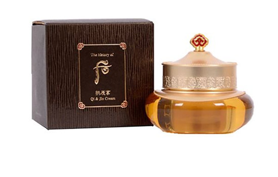 在用完水、眼霜、精华、乳液以后再使用该款面霜,这款面霜则是利用whoo配送的勺子,挑出一勺,然后涂抹在脸部肌肤上,从脸部的中央向外边打圈式的轻柔涂抹。在涂抹完面霜以后,可以利用双手掌心的热度捂住脸部皮肤,从而促进吸收。