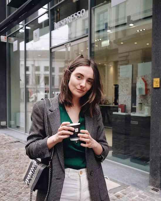 同时这样的搭配更简约也更有气场,同时也是显高的小妙招哦~