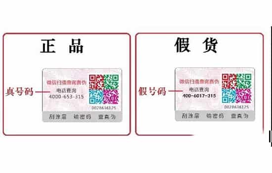 在手机微信“扫一扫”状态下扫描防伪贴上的二维码,如显示如下内容,一律为假货!