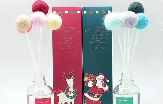 不喜欢香薰蜡烛,或者担心明火的安全问题的,可以选择这款液体香薰。香味也是很有层次的,红色初闻是橘子苹果的香气,中间有玫瑰,最后以紫罗兰和檀木香气收尾,绿色是和上面的蜡烛完全一样的香气,扩香棒上面的小毛球是真的绝顶可爱。