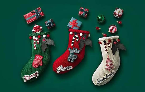 就是给你个针织的袜子,然后把一些个小饰品缝上去,看上去圣诞气息满满。