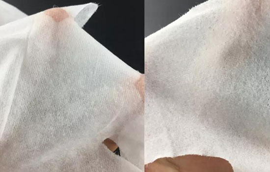 正品面膜纸有竖形纹路,假货面膜纸就是普通的蚕丝纹路。