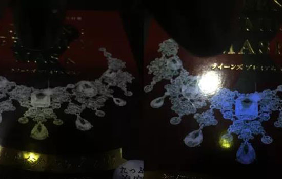 正品盒内不含荧光反应,假货盒内含荧光反应。