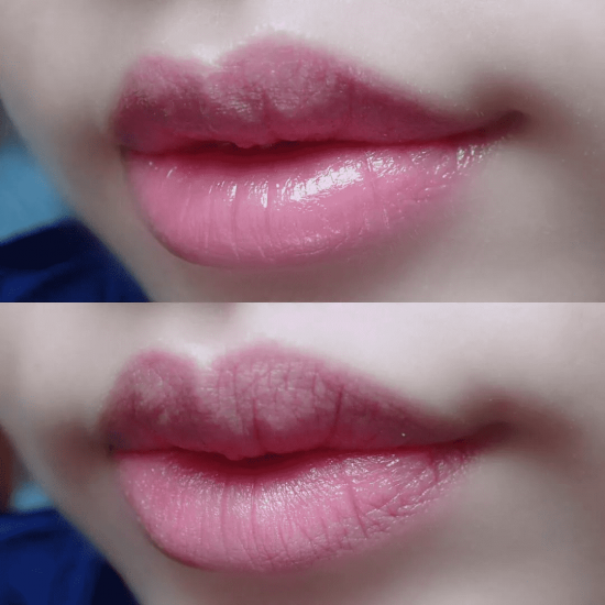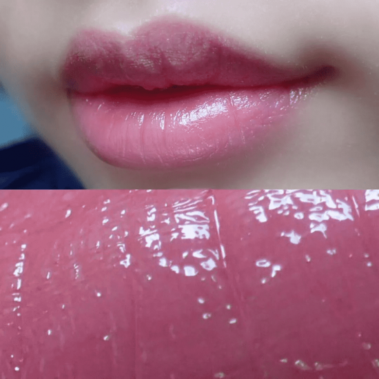上嘴先是透明色,会跟着唇部温度和PH值慢慢加深。