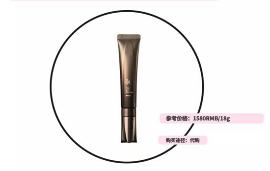 玩技术的大佬POLA,是日本高端品牌。这款眼霜也是它们家知名度很高的产品,娱乐圈一众明星纷纷为它打电话。这款眼霜运用并添加了抗糖化专利技术以及成分,包括紫云英、黄连,这款眼霜中都用到了,效果自然是有保障的。精心设计了控制用量的**头,一只眼睛挤出一粒就够了。质地厚实柔滑,好推开,肤感、滋润度方面都无可挑剔。总的来说是一款功能比较全面的眼霜,安全性也很高,孕妇可用,银子够的话,建议入手。
