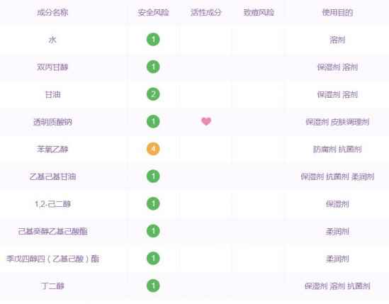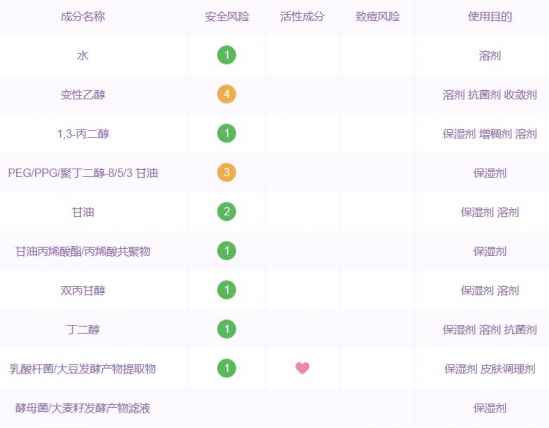 功效成分非常多,和洁面相比补水成分更多。