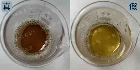 正品修复液属于比较深的黄褐色,假货修复液属于淡黄色。