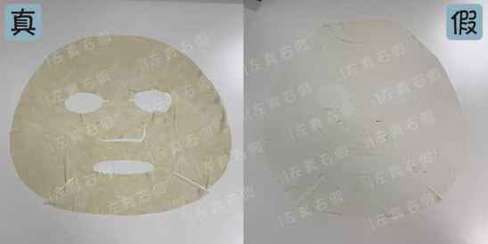 面膜纸也因为修复液颜色的渲染导致有了色差,正品面膜纸深色 ,假货面膜纸浅色,而且正品的修复液颜色随着生产时间的长度变得更深。