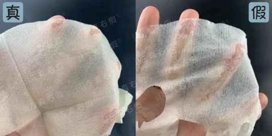 正品面膜纸的采用在外盒上有说明,用的是无纺布,假货面膜纸感觉用的是蚕丝面膜纸,比较薄,摸起来像是纸,上手后很轻易就能感受出来。