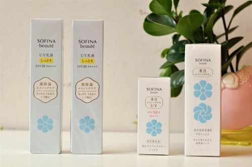 蓝小花是SOFINA家的王牌产品,有保湿和抗氧化功效。2013年3月全新包装上市,PA增加值至四个+。日本和香港票选为最佳化妆底霜。Beaute适合混合干皮或干皮大夏天使用,大油田肌底的推荐用jenne系列。我在冬季用的是Baute系列,保湿能力很好,质地清爽亚光和顺滑,之后再上Laura Mercier蜜粉,或者什么都不上也好,妆容都十分干净白皙。