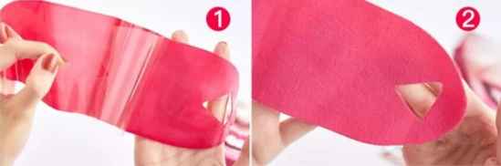 以人中鼻梁为中心部位敷上面膜,由内而外将隐形弹力面膜抚平,推出其中的空气。