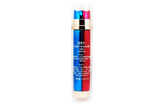 这款底妆产品是双管的,蓝管是妆前乳,作用是够提亮肤色隐藏毛孔。而红管的作用则是美白遮瑕。老实说,蓝管还是比较润的,打底不错,可以均匀肤色。但这个红色挺难推开,最重要的是,它还会让你感觉比较干。干皮的妹纸肯定是hold不住的,而且妆感有点重,容易让人一眼看穿,比较介意的仙女还是不要买这款了。