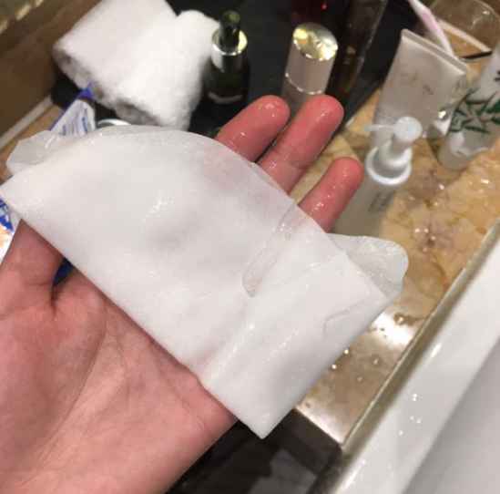 面膜用完后袋子里的还会剩下一些精华液,就丢进去压缩面膜纸,这样就自制多出了两片面膜,价格也太亲民了!