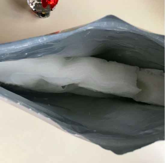 打开后面膜纸质是相当的厚实,采用了W双重气旋浸透技术,可以很好帮助吸收精华液,所拿出面膜纸后,袋里面的精华不多。上脸不会特别粘腻,还蛮清透的,最关键的是不闷痘痘呀~