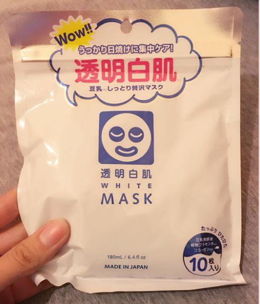 石泽研究所的透明白肌美白面膜,无色素无香料配方,内含豆乳发酵液、植物胎盘素、胶原蛋白,足量的美容液能迅速深入角质层。