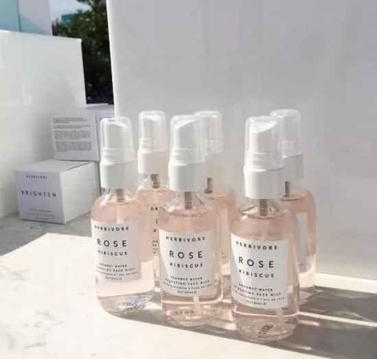 容量都是便于携带的小瓶装,最有名的产品——玫瑰保湿喷雾,由椰子水、木槿花花瓣、金缕梅以及最主要的玫瑰保湿成分制作而成。木槿花富含苹果酸和柠檬酸,可以促进细胞循环再生;玫瑰的抗氧化成分可以减轻泛红和皮肤炎症。这款是120ml的容量,使用前需要摇晃均匀,在清洁面部之后、涂保湿水之前使用。