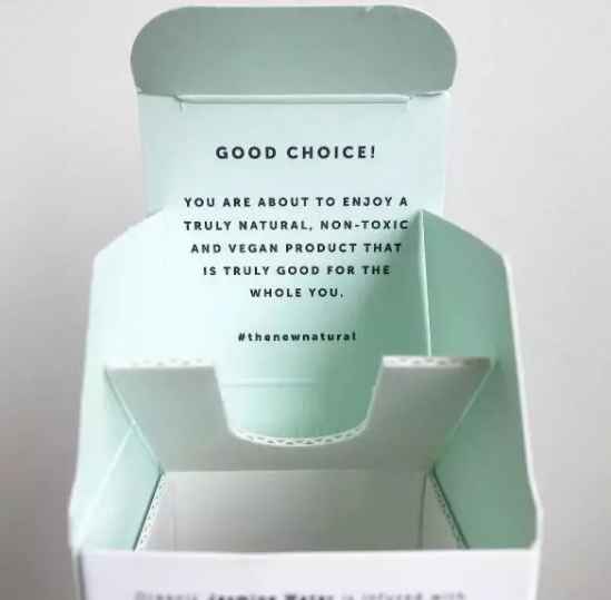 最特别的是马卡龙色的包装盒里还印着# thenewnatural #(新的自然)的品牌理念,细节非常贴心。