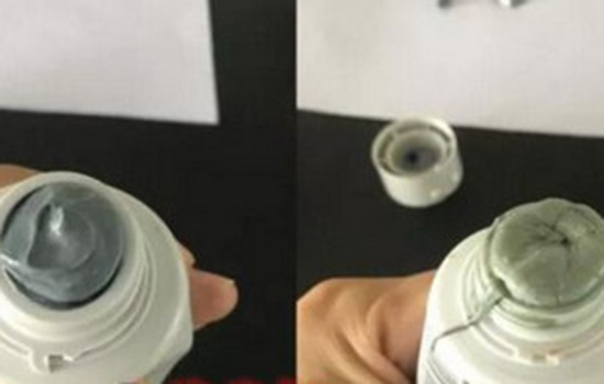 正品膏体颜色灰色,假货膏体颜色绿色。