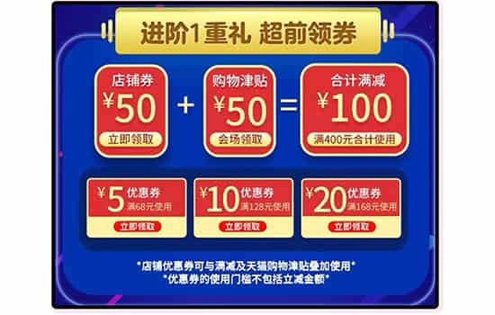 这次双十一活动,启初是买满400最划算,可以店铺券+津贴一块用,算下来满400减100。