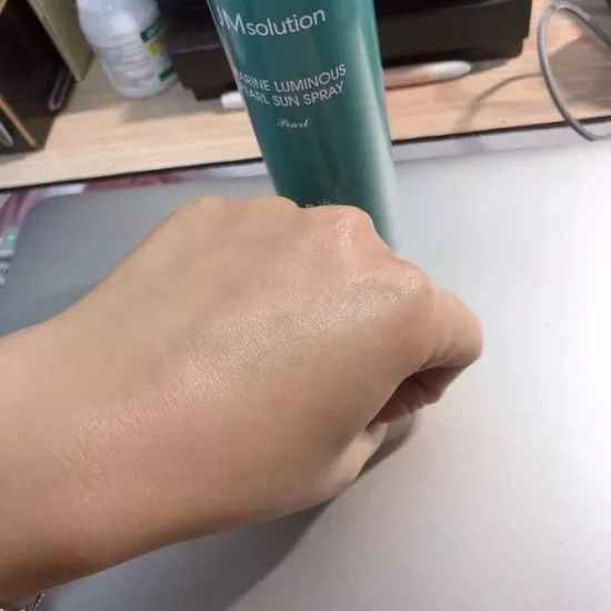 喷出来就是完全水感状的,而且喷雾比较轻薄,透明不泛白,成膜也算比较快的。刚刚喷上的时候还会有点清凉感,夏天用的时候非常清爽。