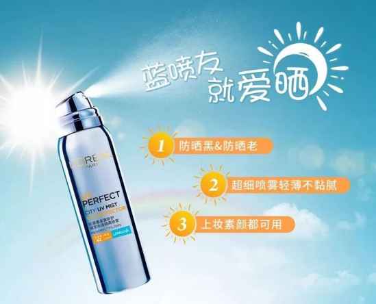 长时间户外或者海边可以选择:安耐晒金瓶喷雾、欧莱雅蓝喷友(暴晒记得补涂)