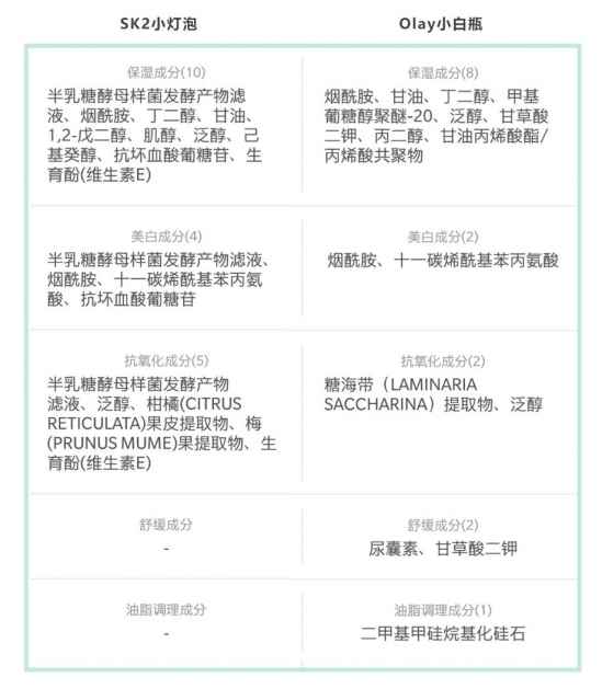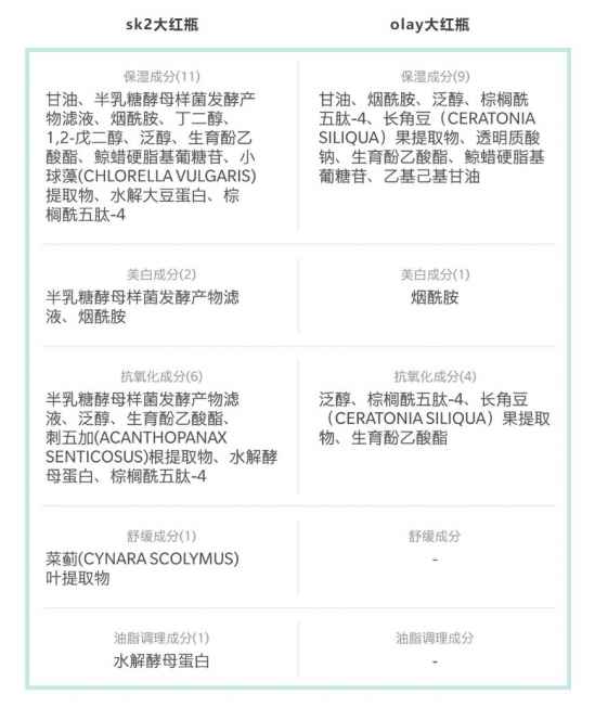从成分来看,SK2多了专利的pitra成分,自然会有更好的效果。但经济不允许,还是可以用olay来替代改善一下的。