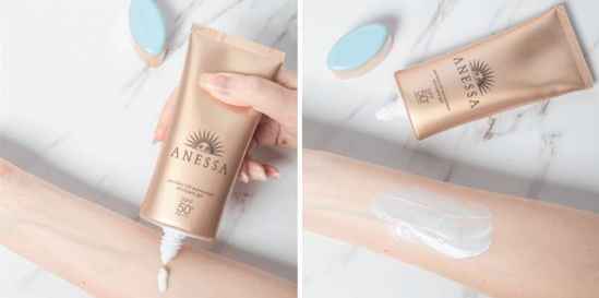 除了安耐晒一贯强大的防水防汗性能外,粉金瓶添加了美容液精华,防晒的同时还可以护肤,不需要单独卸妆,普通洗面奶和沐浴露就可以轻松卸除。