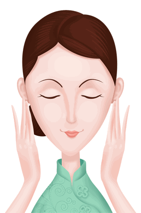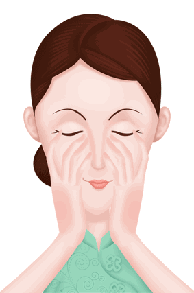 2、由下巴到耳侧,由鼻翼到耳中,颧骨到太阳穴,由额心往两侧横擦,再顺着鼻梁从上往下轻拭,鼻梁两侧和上唇处,来回轻试,从下巴往两颊提拉。