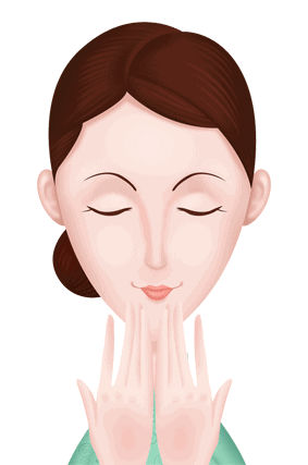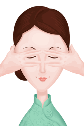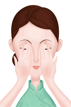 6、两手搓热,手心包裹整个眼部。