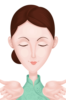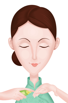 4、额头部分,用中指以及无名指指腹,由眉心往左右两侧,以螺旋状轻轻**整个额头肌肤。