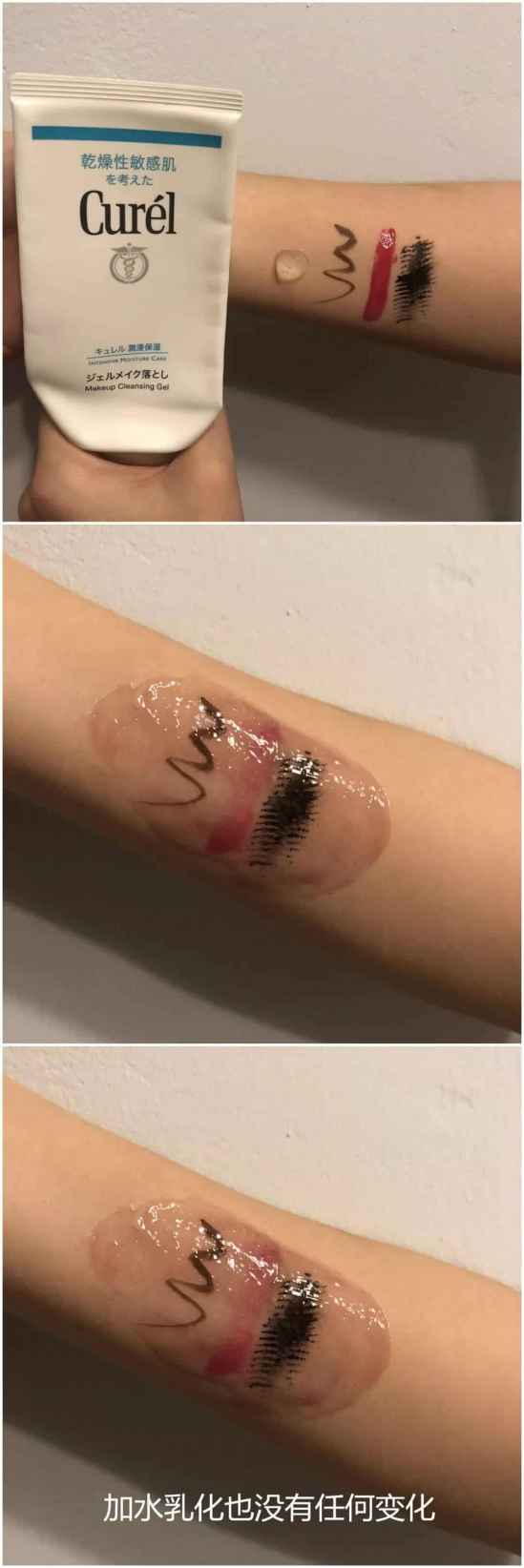 这一款也属于卸妆乳质地,喜欢用日妆的仙女们一定知道,珂润家的产品都是低敏高保湿那一挂的,这款卸妆啫喱也是一样,清爽不油腻,挤在手心进行**,在稍加一点水进行乳化。因为这款是专门卸面部底妆的,所以小仙很好奇卸眼唇怎么样,试验了一下,果然商家没有骗人,它只能卸底妆哈哈。这款对面部不会产生任何负担,敏感肌的仙女们快快入手吧!