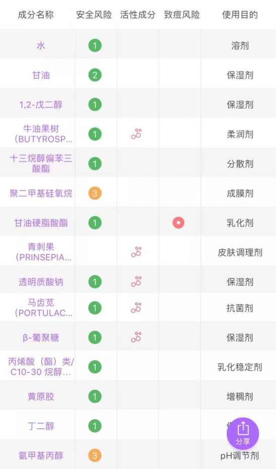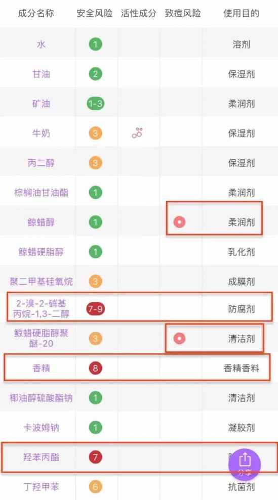 除了有一个防腐剂和香精的危险系数比较高以及一个容易致痘的乳化剂成分之外,其他成分都算比较安全。