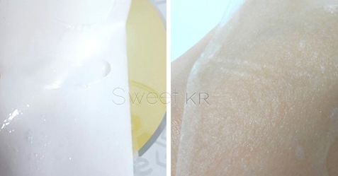 采用自然纤维材质,轻薄通透,敷上感觉紧贴脸部,渗透力强,加上满满的精华液,敷完后水润感有明显提升。