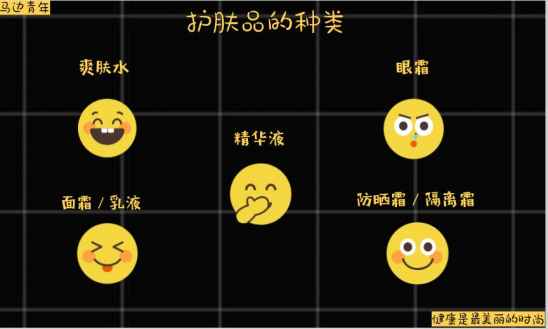 上面说了那么多,男生们最陌生的应该就是对于护肤品的了解。看到女生们化妆台上的瓶瓶罐罐,根本不知道是干什么的,下面划分以下护肤品的种类