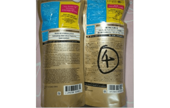 安耐晒防晒的包装袋左上角上面会有一个90ml标志,国际版安耐晒上面的是蓝字白底,而本土版的则是白底红字;安耐晒防晒包装的后面会有一些说明,国际版是英文的,而本土版则是日文的;安耐晒防晒背面的右侧面会有一条竖条,国际版的竖条比较细,颜色也不明显。