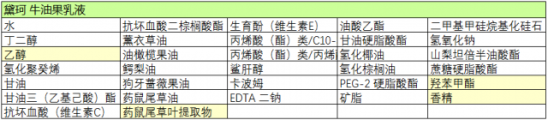 我们来看下黛珂:牛油果乳液+紫苏水的成分