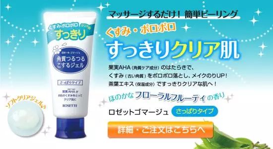 日本ROSETTE去角质凝胶 面部专用真的是超好用又平价的去角质啫喱凝胶,一个星期用1-2次,可以搓出泥,然后用完脸上特别特别的光滑特别的嫩,女生的必备品!定期的去角质可以令保养品更好吸收哦!也可以用在肘部,膝部,脚跟部等。